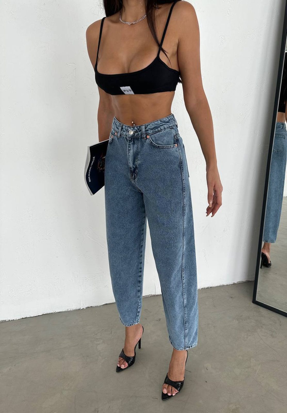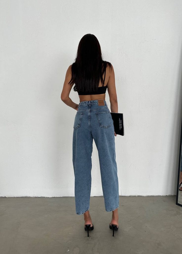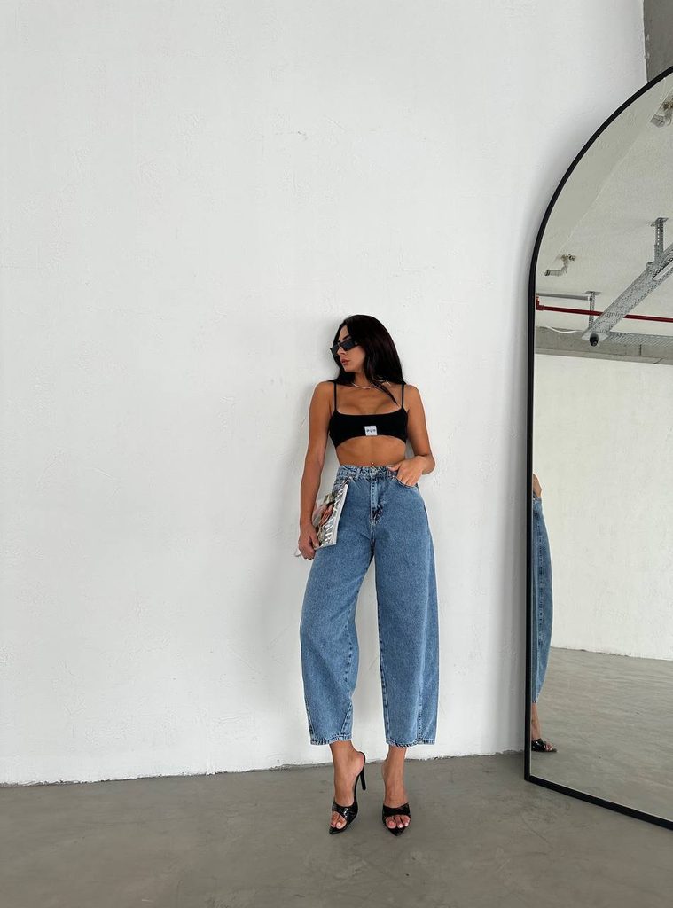 Modré bavlněné balloon džíny.