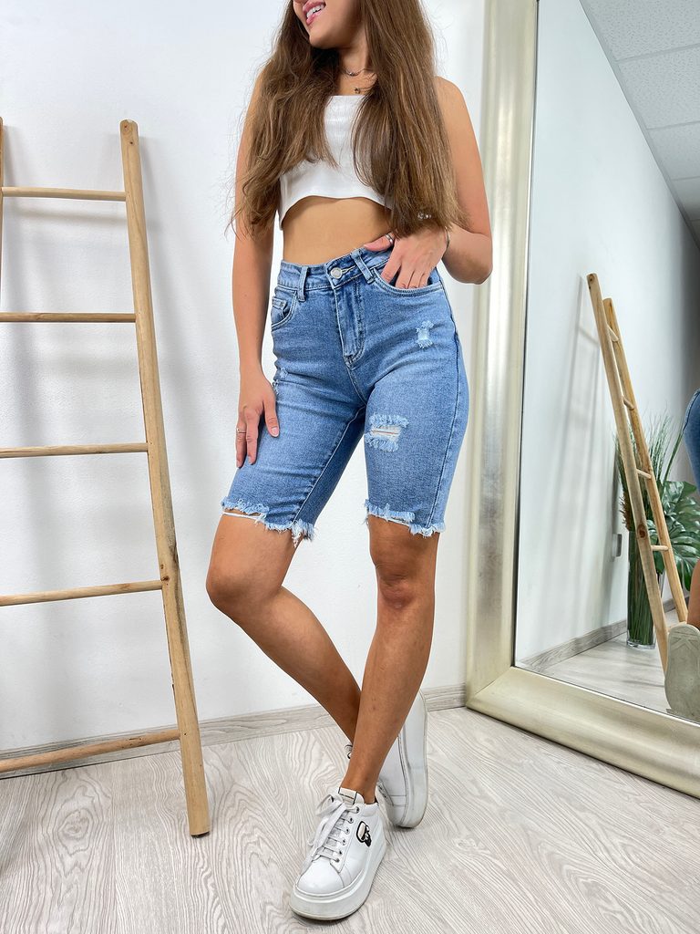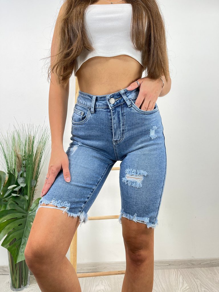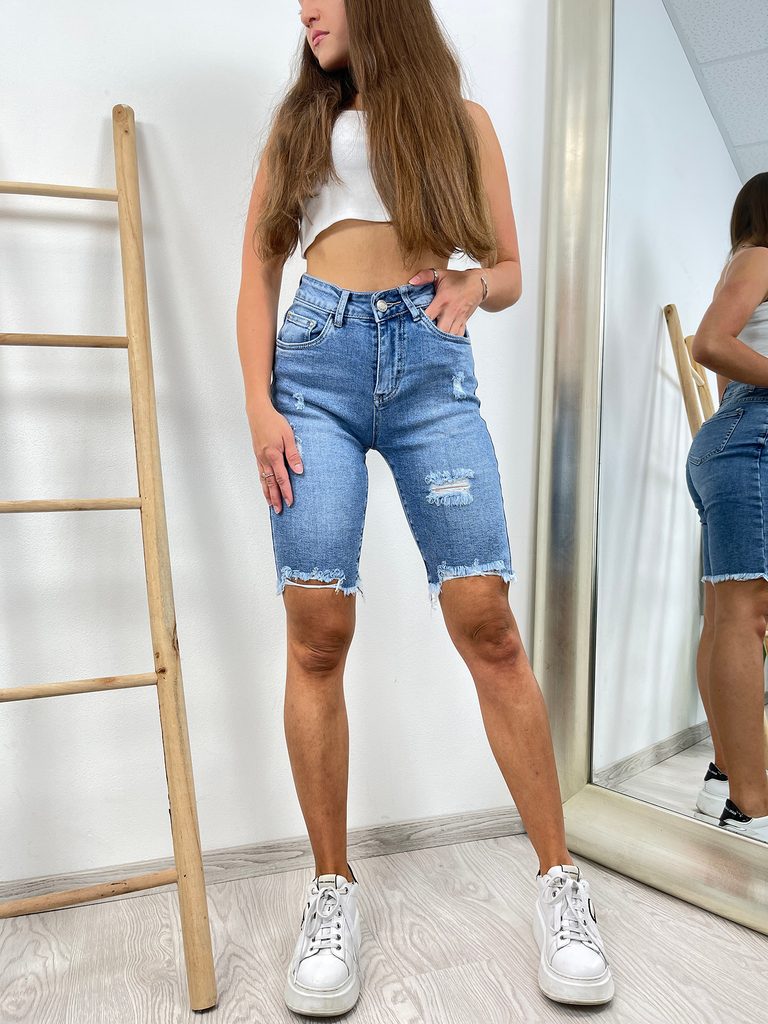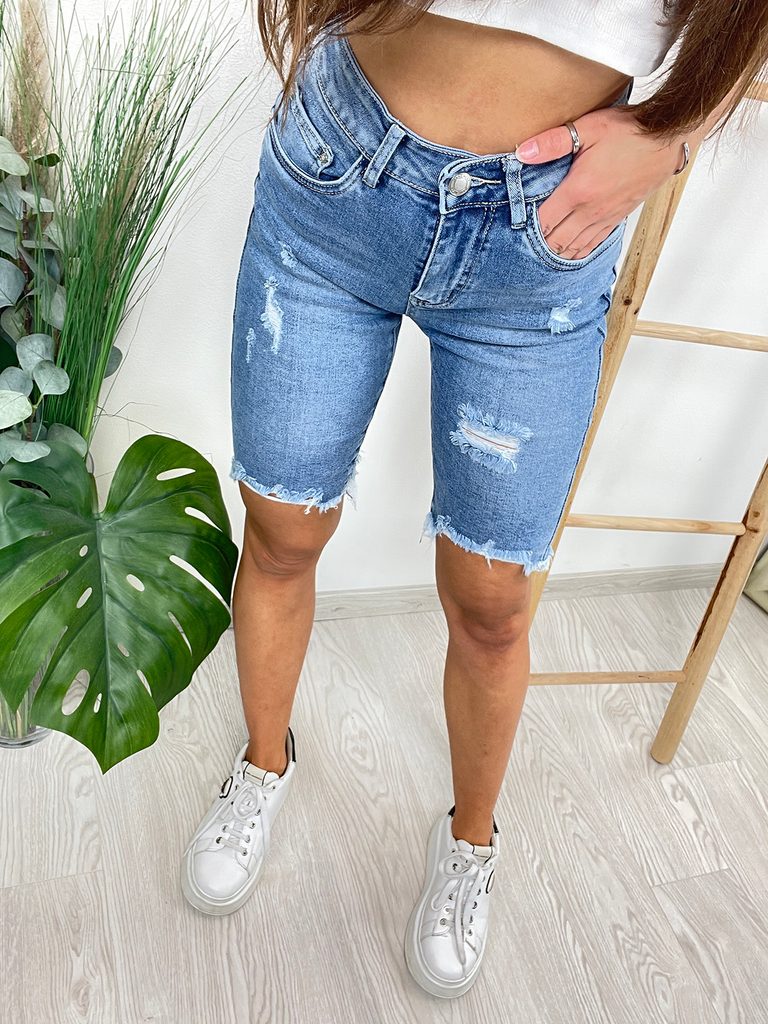 Džínové kraťasy s trháním modré