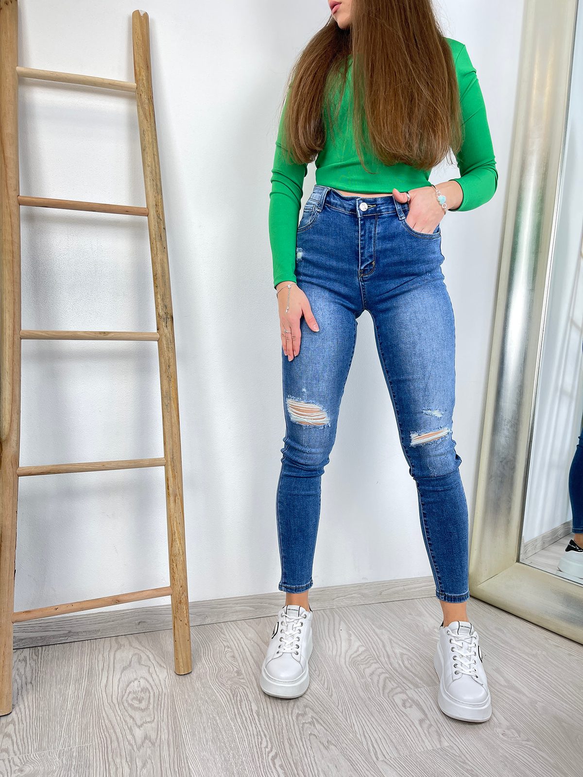 Džíny skinny s trháním modré